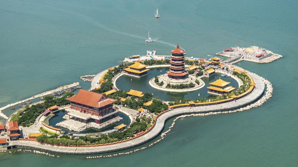 An aerial photo of the Eight Immortals Crossing the Sea Scenic Area in Penglai. [Photo/Dazhong News]