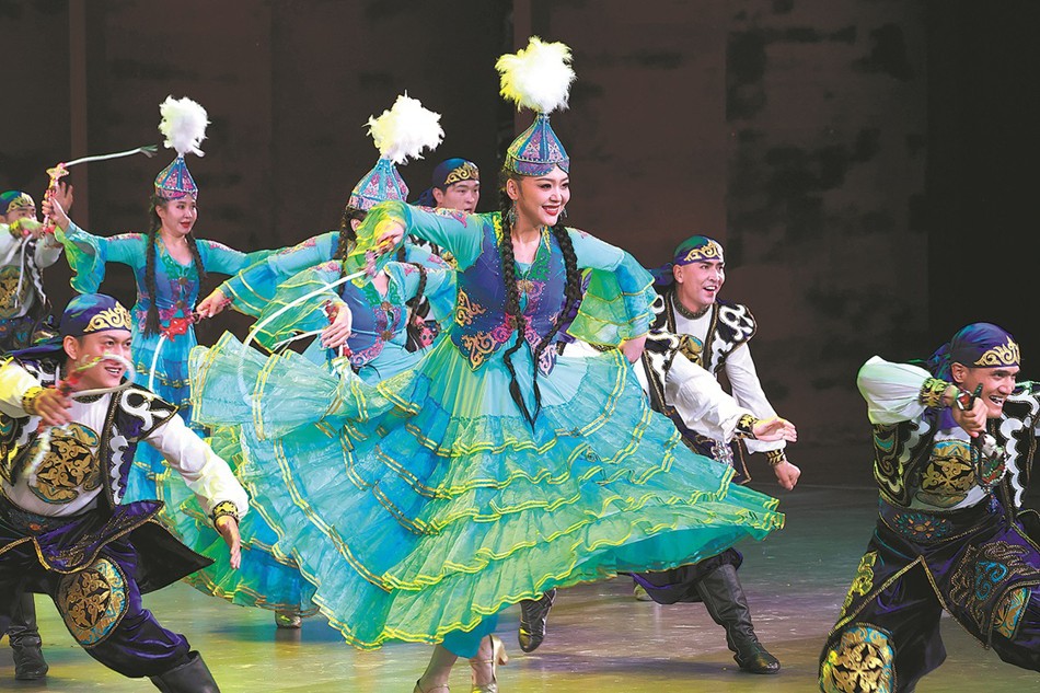 A cultural performance is staged on Wednesday evening in Urumqi to celebrate the 70th anniversary of the founding of the Xinjiang Uygur autonomous region. DING LIN/XINHUA