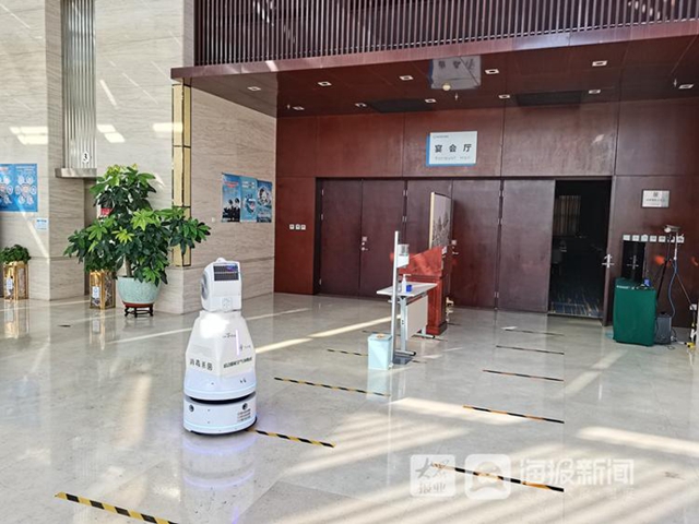 According to a representative from Shandong Qishun Environmental Protection Technology Co, the air disinfection robots work 24 hours a day and discharge anion to completely sanitize the hotel.